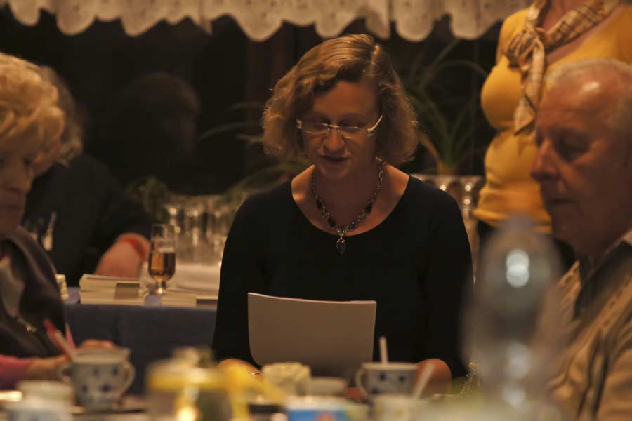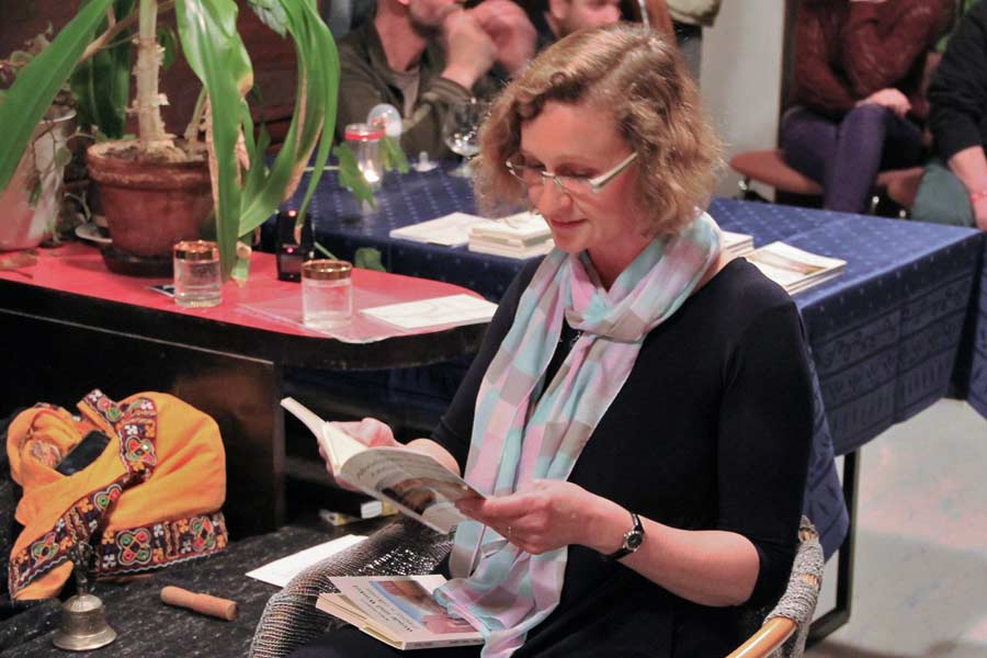 Již podruhé se nám podařilo pozvat z Prahy pocházející, v Cáchách žijící autorku Kláru Hůrkovou na lyrické čtení s hudebním doprovodem. Všichni účastníci napjatě sledovali tuto dvoujazyčné čtení z nejnovějších, ještě nezveřejněných básní Kláry s hrou Karla Homolky na tibetských mísách. Při tomto posledním setkání v roce 2013 se zase jednou ukázalo, jak účastníci obou spolků dobře harmonují. „Pilní skřítci“ pekli, vařili a umožnili všem nádherný večírek, který skončil až dlouho po půlnoci.