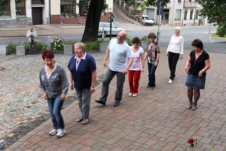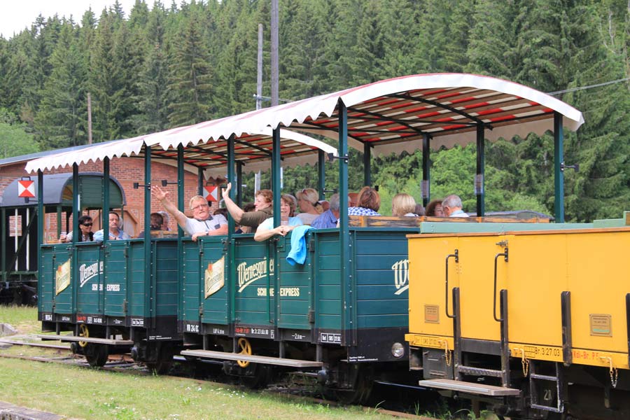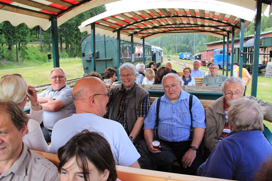 Tentokrát jsme se setkali 28. června v Schönheide. Splnili jsme přání našich přátel a uskutečnili jízdu historickým, úzkokolejovým, vláčkem. Setkalo se nás skoro třicet a jízda (počasí nám přálo) byla velmi hezká. Poté jsme měli sraz ve sklípku tamnější radnice. Atmosféra byla jako vždycky nádherná, Eva und Manuela nám při irské hudbě předvedly, jak se tancuje line dance a před radnicí se nám trochu později pokusily naučit první kroky ...