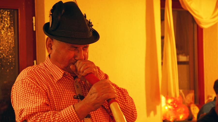 Pan Pöhler hrál na samovyrobeném alpském rohu a nakonec předal jménem různých krušnohorských spolků a soukroumých osob sbírku na akci „Pomoc pro Pepu“, za kterou mu mnohokrát děkujeme a která Pepovi velice pomůže.