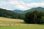Der harte Kanten – vorbei am Campingplatz Hejnice folgten wir einem sanft ansteigenden Weg ins Schwarzwassertal bis zum Wasserfall. Von dort stiegen die "Sportlichen" einen immer steiler werdenden Weg hinauf zu den Friedländer Zinnen (Frýdlantské cimbuří – 918 m). Wer es geschafft hatte, wurde mit einer traumhaften Aussicht bis ins Zittauer Gebirge belohnt. Einmal oben, führte uns ein romantischer Gebirgspfad einige Kilometer durch Wald und Stein. Über eine ebene Forststraße und einen steil absteigenden steinigen Weg, vorbei an einem idyllischen Waldsee und dem Wasserfall gelangten wir wieder ins Tal nach Hejnice und stärkten uns im Dělnický dům für die letzten Meter zur Pension.