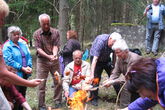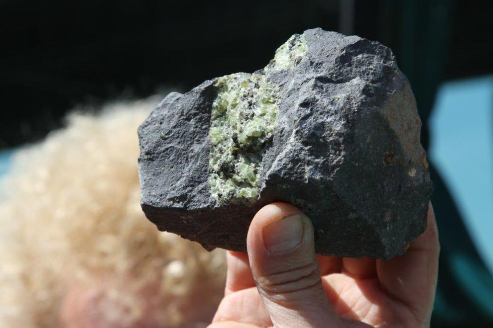 Unsere Fahrt ging weiter zum Naturdenkmal Dominova skalka. Dr. Petr Rojik lud aus dem Bus einen Teil seiner Mineraliensammlung aus. Auf seine humorvolle Art nahm er uns mit in die Unterwelt, wo diese Gesteine ihren Ursprung hatten. Danach erkletterten wir den dortigen Serpentinit-Felsen und bestaunten die Pflanzenwelt. Am Fuße des Felsens holte Petr Rojik sein Akkordeon hervor und spielte uns einige einheimische Weisen.