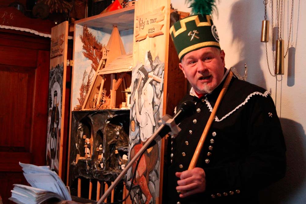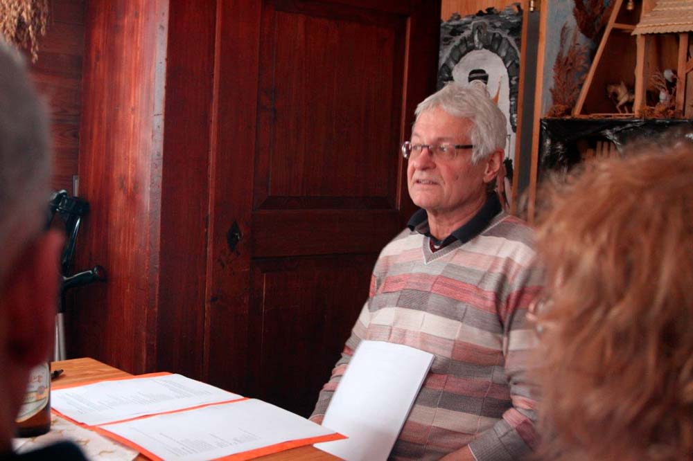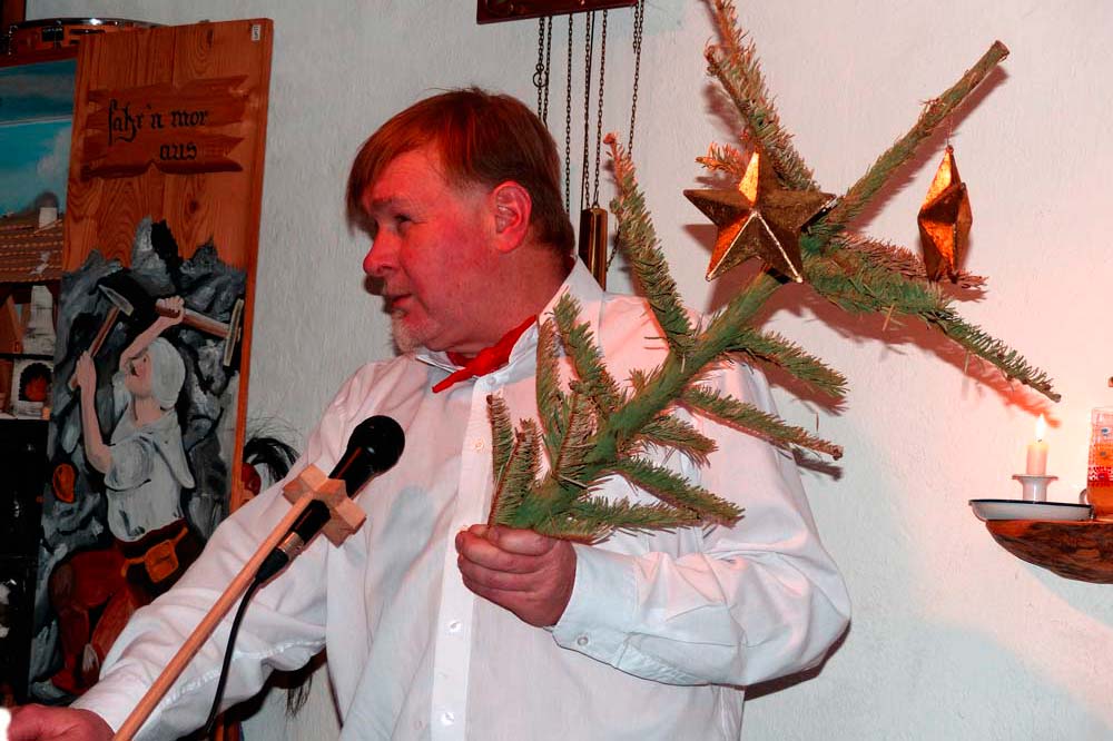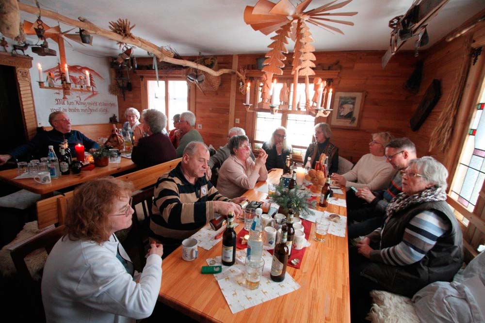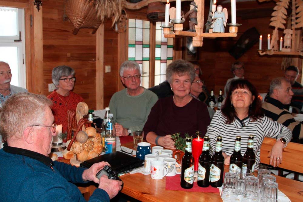 Am Sonnabend, den 21. Januar, fand unsere Mitgliederversammlung in Kühnhaide bei Zwönitz statt. Nach dem Ende des offiziellen Teils der Versammlung mit den Berichten des Vorstandes und den Neuwahlen gingen wir zum gemütlichen Teil über. Bei einem heimatlichen erzgebirgischen "Hutzenohmd" im Salzerhaus mit Kachelofen und Ufenbank wurden wir von Herrn Salzer in die gute alte Zeit wie sie früher bei uns "emol su war" zurückgeführt.