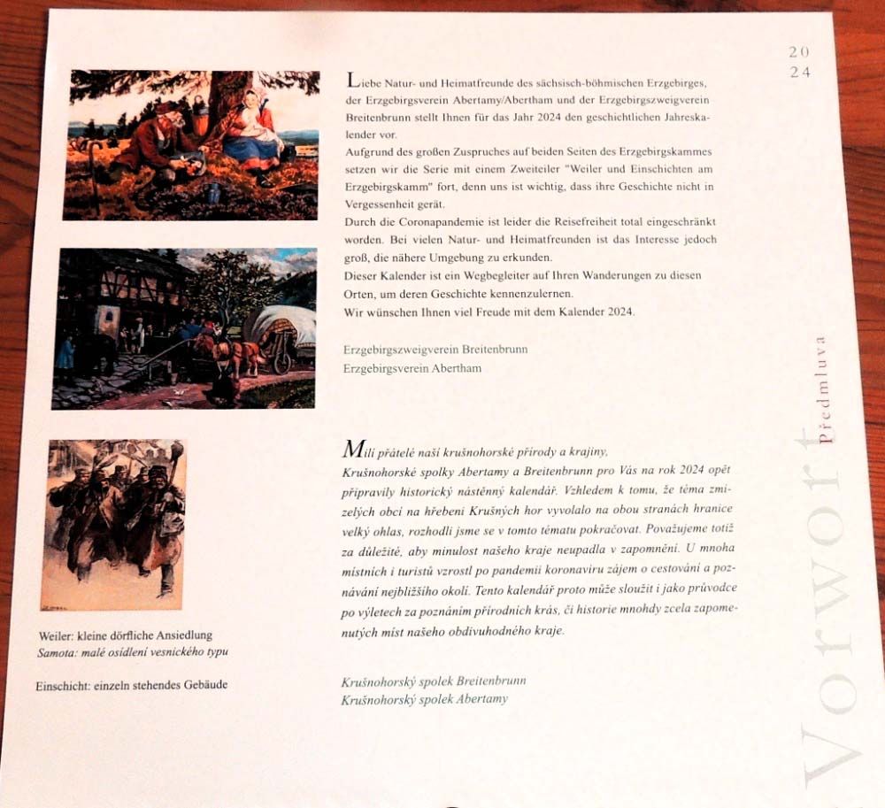 Alljährlich erscheint ein Kalender über das sächsisch-böhmische Erzgebirge und seine Geschichte in deutscher und tschechischer Sprache, herausgegeben vom Krušnohorský spolek Abertamy und dem Erzgebirgszweigverein Breitenbrunn.