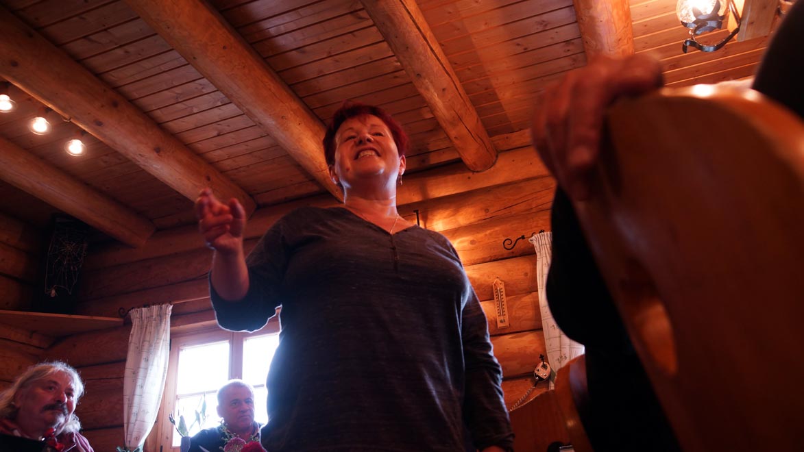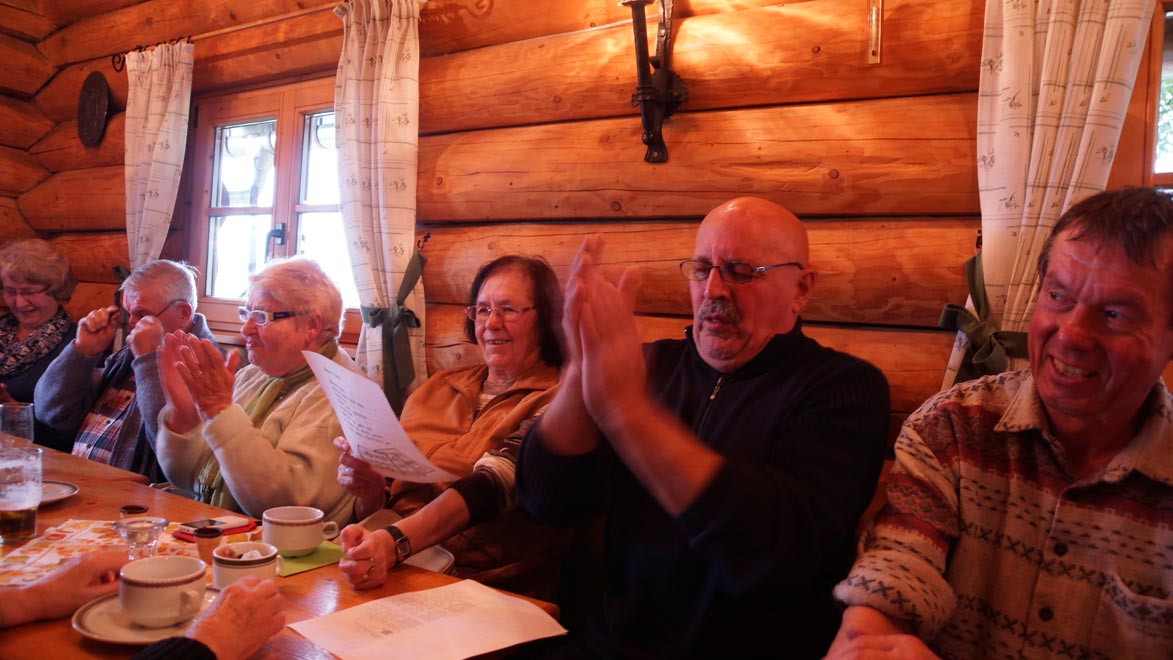 Nach dem anstrengenden Vormittagsprogramm ging es in die wunderschön gelegene Wanderhütte des Erzgebirgsvereins Markersbach. Dort stand schon, dank der fleißigen Heinzelmännchen und – frauen des Vereins Potok, ein kräftiger Imbiss zur Stärkung bereit. Auch ein Fass guten tschechischen Bieres wurde angezapft. Einige wettererprobte Teilnehmer nutzten noch die Gelegenheit, sich die Anlagen des Oberbeckens des PSW anzuschauen. Bei handgemachter Musik (Dankeschön an den Musikus Tobias Stahl) und unserem nicht professionellen aber sehr fröhlichen Gesang wurde bis in die Abendstunden gefeiert.