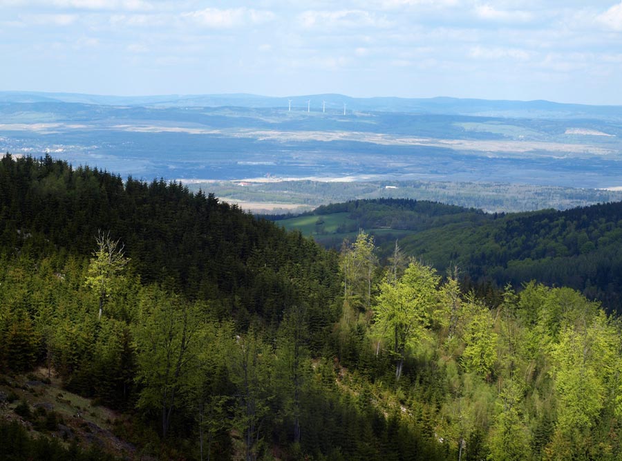 Unsere Wanderung führte uns dann von Hrušková aus über die Ruine Kostela sv. Mikuláše zum Gipfel des 866m hohen Krudum. Dort genossen wir den beeindruckenden Rundblick von der Besucherplattform des Funkturmes. Schnell waren die Strapazen des Aufstieges vergessen. Unterwegs erhielten wir von Petr sachkundige Informatinen zur Geologie und Natur dieser Region.