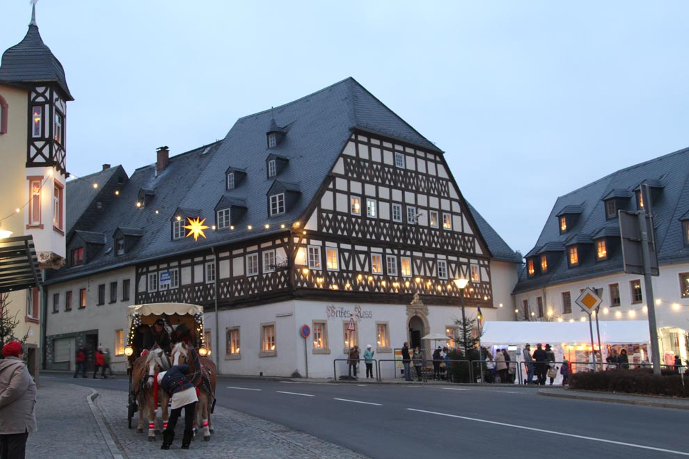 Doch zunächst wurde die Kirche in Thierfeld mit der wunderschönen rekonstruierten Barbarakapelle aus dem 15. Jahrhundert besichtigt. Anschließend unternahmen wir noch einen Bummel über den Hartensteiner Weihnachtsmarkt, der an diesem Tag seine Pforten öffnete.