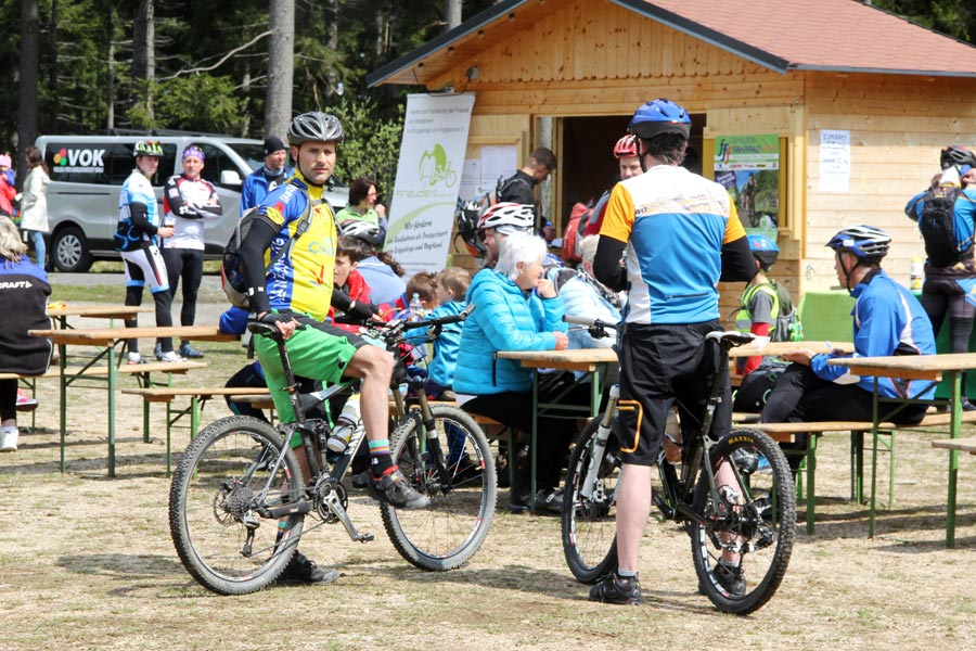 Za krásného slunečného počasí, příjemné nabídky rozmanitého občerstvení se následně vyvinulo družné společné setkání, při kterém nešlo jen o výlet na kole, ale také o navázání nových přátelství. Na informačních stáncích turistického informačního centra Eibenstock, informačního centra Nejdek, spolku běžců maratonu Eibenstock i spolku "Radost z cyklistiky" měli hosté možnost získat obsáhlé informace týkající se tématu cyklistika a dalších turistických nabídek v příhraničním regionu. Ohlášený čestný host se nakonec ukázal jako císař Karel IV., jehož narozeniny se 14. května 2016 oslavily po sedmi sté. Navzdory celostátním oslavám tohoto památného dne v České republice, si kdysi významný český král a římsko-německý císař (hraný jedním českým studentem) nenechal ujít příležitost přijet za všeobecné pozornosti s kočárem a doprovodem na setkání cyklistů. Jeho "poddaní" poděkovali jmenovci "Karlovy stezky" (království pro kolo) speciálně zhotoveným narozeninovým dortem. Na otázku, jak je možné, že po 700 letech vypadá stále tak mladě, odpověděla jeho výsost, že jej v kondici udržuje cyklistika v krásném prostředí Krušných hor, především na trase "Karlovy stezky". Kdo by s tím nesouhlasil?!