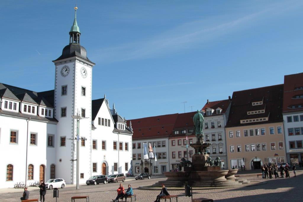 Nakonec nás Eva-Marie Hommel, která připravila exkurzi do Freibergu, provedla starým městem, kde nám ukázala další zajímavé budovy včetně staroměstské radnice. Vše vyprávěla v češtině a němčině.