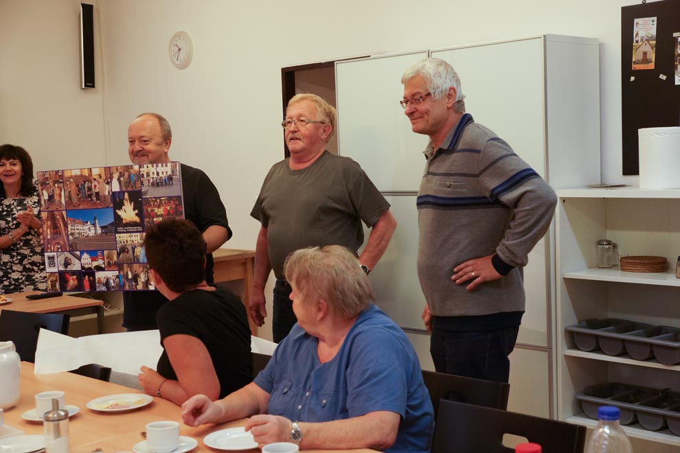 Muži byli v průběhu dne vysláni do lesa, kde nasbírali šišky, listí a další předměty pro výzdobu slavnostní tabule. Zažili tak na vlastní kůži i první letošní sníh. Odpoledne jsme pak společně s velkým zájmem shlédli dokumentární film „Krušné hory – Pohraniční příběhy Čechů a Němců mezi Kraslicemi a Klínovcem“ filmového studia SIRIUS. Vrcholem večera bylo vynikající čtyřchodové menu. Vše chutnalo skvěle a tak jsme poseděli až do pozdních nočních hodin.