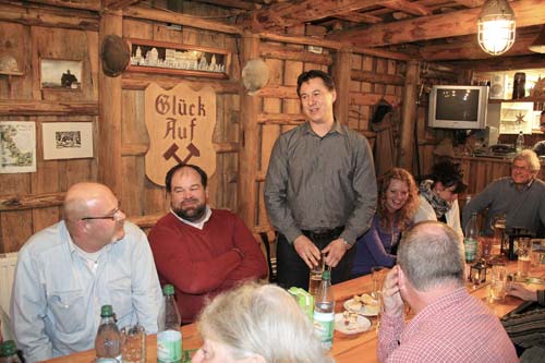 Dobrým pivíčkem z pivovaru v Kynšperku jsme zahájili první ŠTAMTIŠ letošní sezony. Byl to opravdu nádherný večer, plný humoru, dobrých diskuzí. Nechyběla ani malá divadelní vložka v krušhohorském nářečí, kterou připravila Kathrin, členka našeho spolku. Nasmáli jsme se tak, že nás všechno bolelo. Jídla bylo jako vždycky pro každého dost a tentokrát jsme také našli dobré příznivce – ředitele pivovaru Kynšperk, pana Vomočila a jeho manažerku, paní Váchovou. Přijeli a přivezli dobrou ochutnávku piva, což se každému samozřejmě velice líbilo a proto nechybělo ani pití. Večírek skončil až daleko po půlnici. Celou akci natáčeli i filmaři německé televize, kteří zrovna v okolí natáčí film o německo-českém Krušnohoří - o přírodě a o lidech žijících v této krajině. Doufám, že jim náš večírek ukázal, jak si lidé dobře rozumí – jedno odkuď pochází. Naši přátelé dojeli domů dobře a my se těšíme na další setkání u nich v Abertamech.