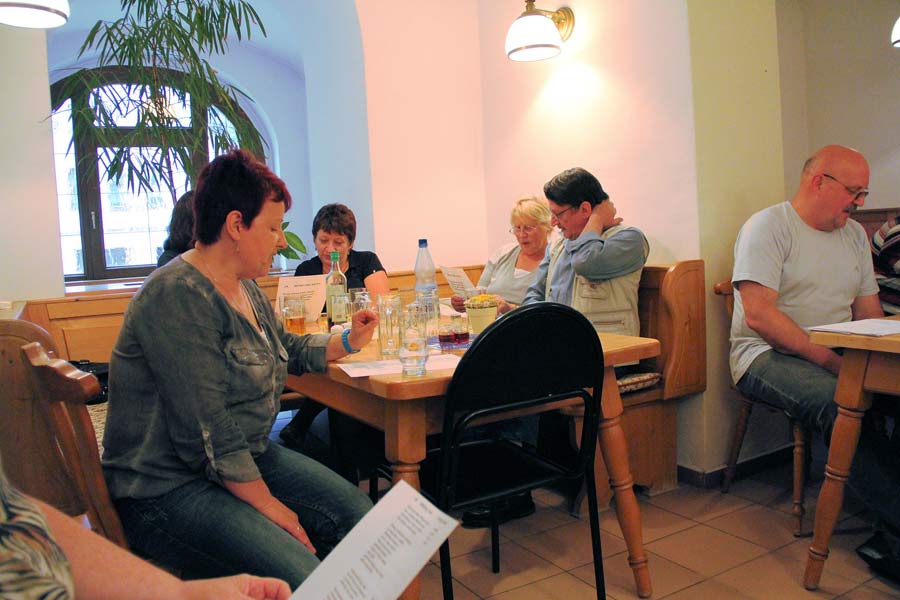 Tentokrát jsme se setkali 28. června v Schönheide. Splnili jsme přání našich přátel a uskutečnili jízdu historickým, úzkokolejovým, vláčkem. Setkalo se nás skoro třicet a jízda (počasí nám přálo) byla velmi hezká. Poté jsme měli sraz ve sklípku tamnější radnice. Atmosféra byla jako vždycky nádherná, Eva und Manuela nám při irské hudbě předvedly, jak se tancuje line dance a před radnicí se nám trochu později pokusily naučit první kroky ...