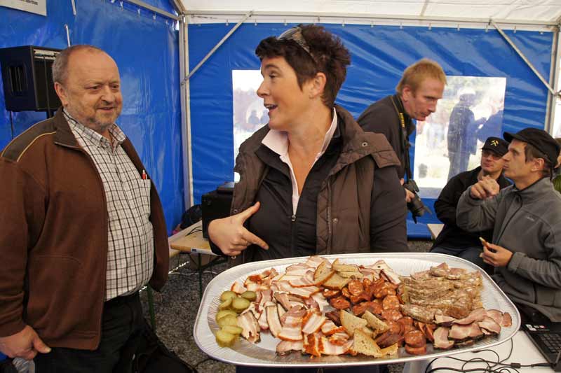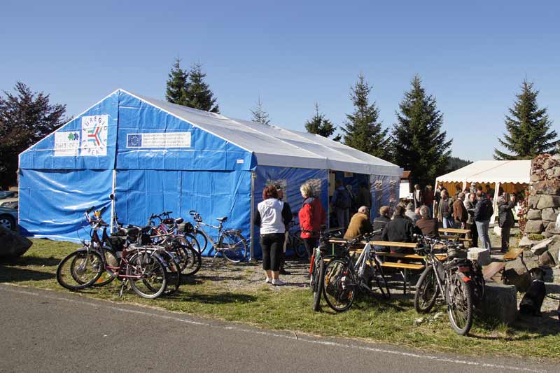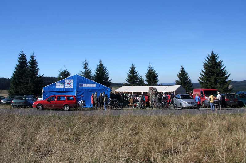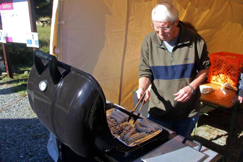 Díky spolupráce všech byly stoly a lavice rychle na místě. Jídlo a pití bylo také rychle připraveno, gril postaven. Chlebíčky, koláče, káva - vše stálo také brzičko na stolech. Krátce později - sluníčko krásně, požehnaně svítilo – si mohli první hosté vybrat a ochutnat z mnoha připravených pamlsků. Po oficiálním zahájení začla v 11 hodin Svatováclavská mše (dvoujazyčná). V poledne měli členové obou spolků plné ruce s pohoštěním četných hostů z blízka i daleka. Atmosféra byla velmi dobrá, ležerní a uvolněná, také díky krušnohorským muzikantům. Bylo dobré vidět, jak si účastníci z obou zemí rozumí. Odpoledne začla přednáška (dvoujazyčná) o hornictví v Krušných horách. Umělečtí řemeslníci z Čech i ze Saska (paličkářky, řezbáři, rukavičkáři, kameníci) vystavovali své výrobky.