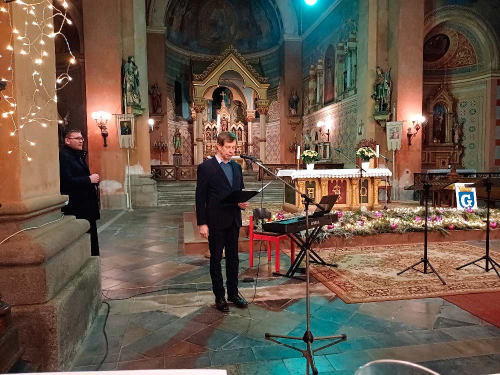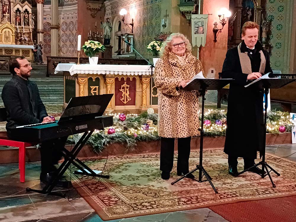 Nach dem ersten Teil des Konzertes mit berühmten Werken aus der Opernwelt stimmten die Künstler gemeinsam mit den Besuchern weihnachtliche Lieder an, wobei Herr Pustina die Melodien vorgab. Den Abschluss bildete das Lied "Stille Nacht", das von Frau Beňačková in deutscher Sprache gesungen wurde.