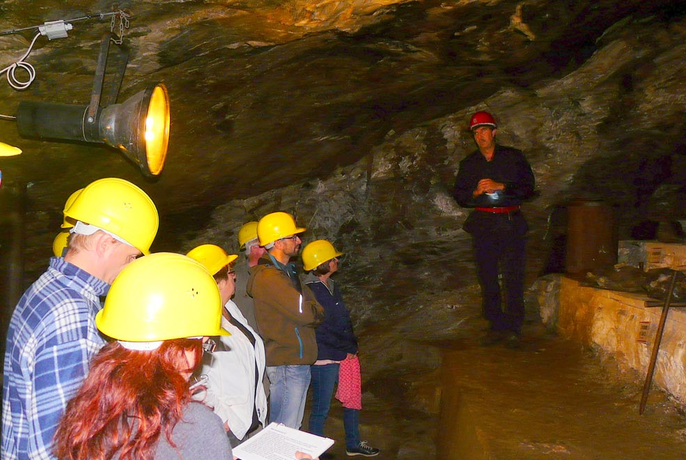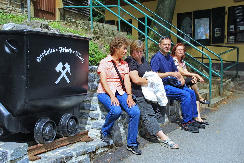 Am 20.08.2016 folgten wir wieder den Spuren des Erzbergbaus im Erzgebirge, diesmal auf der deutschen Seite. Es ging nach Waschleithe ins älteste Schaubergwerk Sachsens. Im Schaubergwerk Herkules Frisch-Glück erlebten wir in 80 m Tiefe eine einzigartige Atmosphäre. Eine lehrreiche und unterhaltsame Führung vermittelte uns inmitten von Marmorsäulen und kleinen unterirdischen Seen eindrucksvolle Einblicke in die harte Arbeit der Bergleute in den zurückliegenden Jahrhunderten.