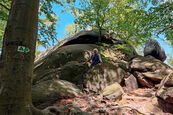 Wir stiegen von Ferdinandov und Hejnice zum 804m hohen Ořešník (Nussstein) auf. Dieser Aussichtsfelsen mit Gipfelkreuz ist zum Schluss über eine Eisenleiter zu erreichen. Wieder hatten wir Glück mit dem Wetter und konnten die herrliche Aussicht genießen. Nur der mäßig starke Wind machte den Aufenthalt etwas unangenehm. Über Stock und Stein stiegen wir wieder ab zum Stolbich-Wasserfall und gelangten steil absteigend hinunter ins Tal. Die Abschiedsmahlzeit im Gasthaus "U Cimpla" musste trotz Vorbestellung leider ausfallen, weil wir vor geschlossener Tür standen. So kehrte jeder auf eigenen Wegen nach Hause zurück.