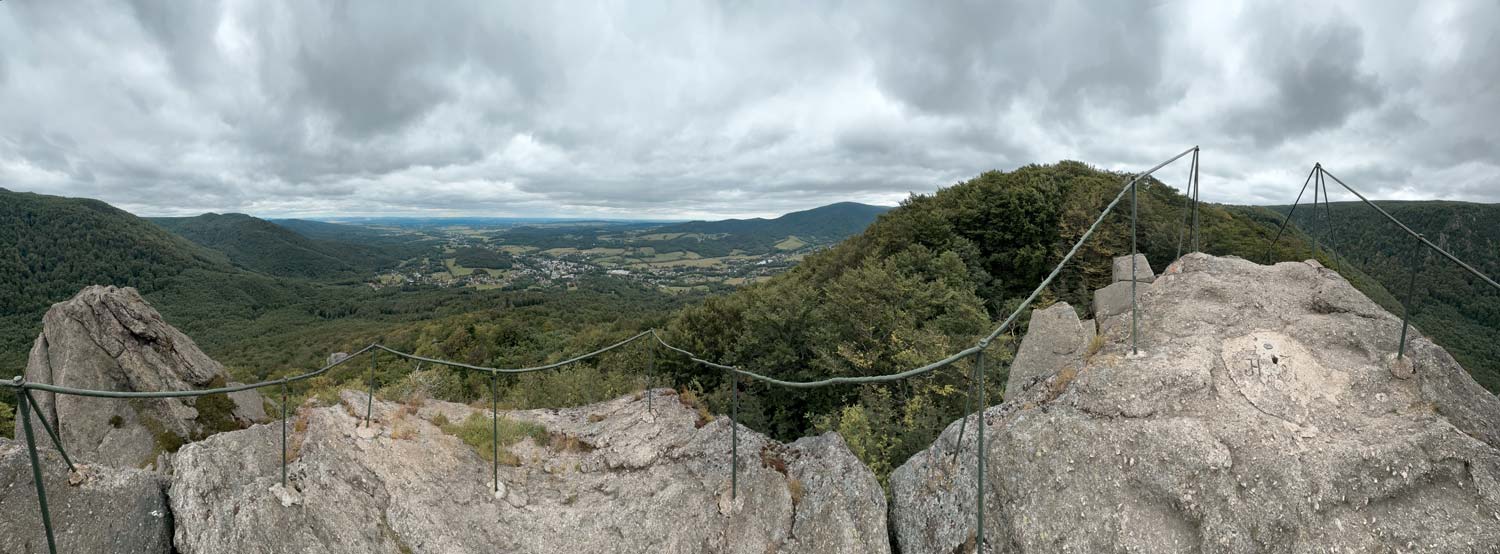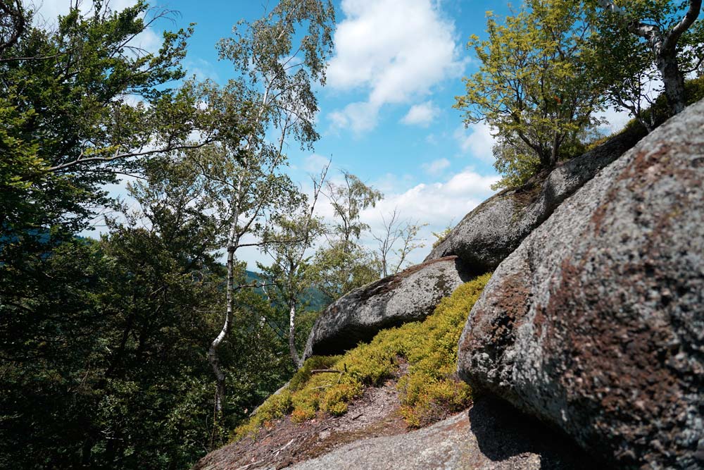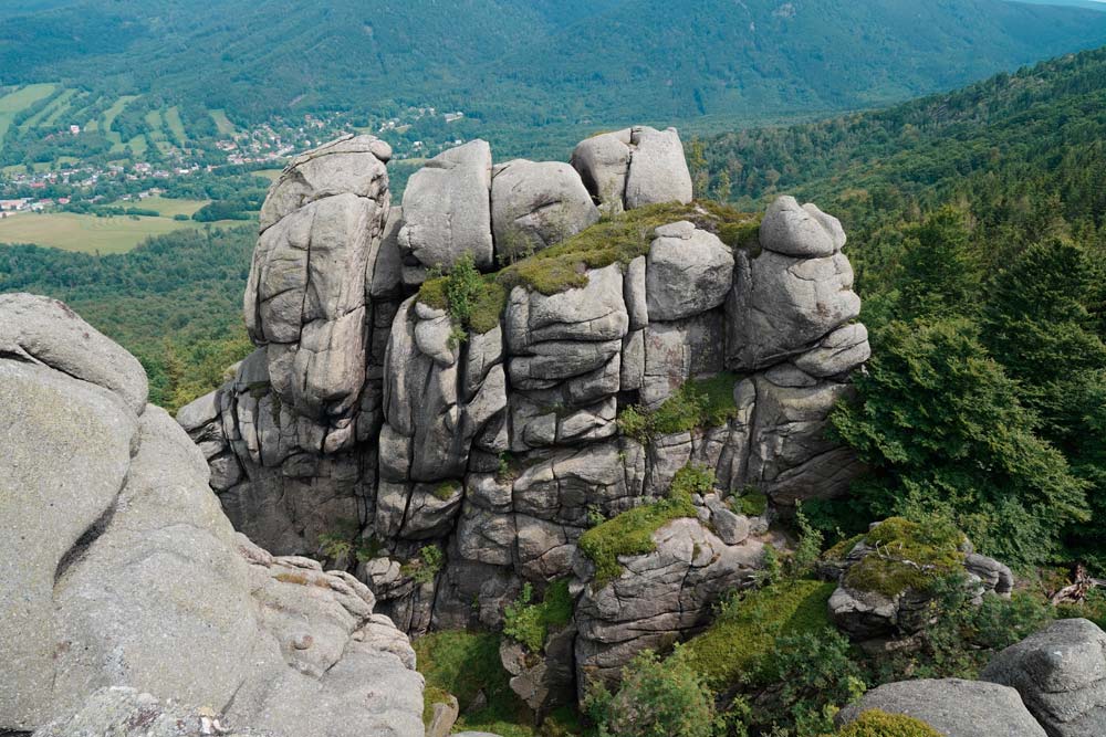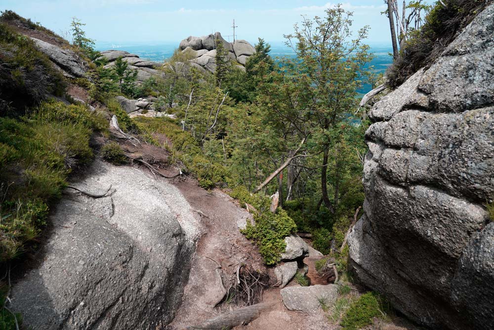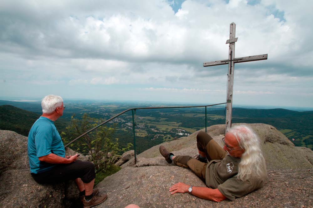 Der harte Kanten – vorbei am Campingplatz Hejnice folgten wir einem sanft ansteigenden Weg ins Schwarzwassertal bis zum Wasserfall. Von dort stiegen die "Sportlichen" einen immer steiler werdenden Weg hinauf zu den Friedländer Zinnen (Frýdlantské cimbuří – 918 m). Wer es geschafft hatte, wurde mit einer traumhaften Aussicht bis ins Zittauer Gebirge belohnt. Einmal oben, führte uns ein romantischer Gebirgspfad einige Kilometer durch Wald und Stein. Über eine ebene Forststraße und einen steil absteigenden steinigen Weg, vorbei an einem idyllischen Waldsee und dem Wasserfall gelangten wir wieder ins Tal nach Hejnice und stärkten uns im Dělnický dům für die letzten Meter zur Pension.