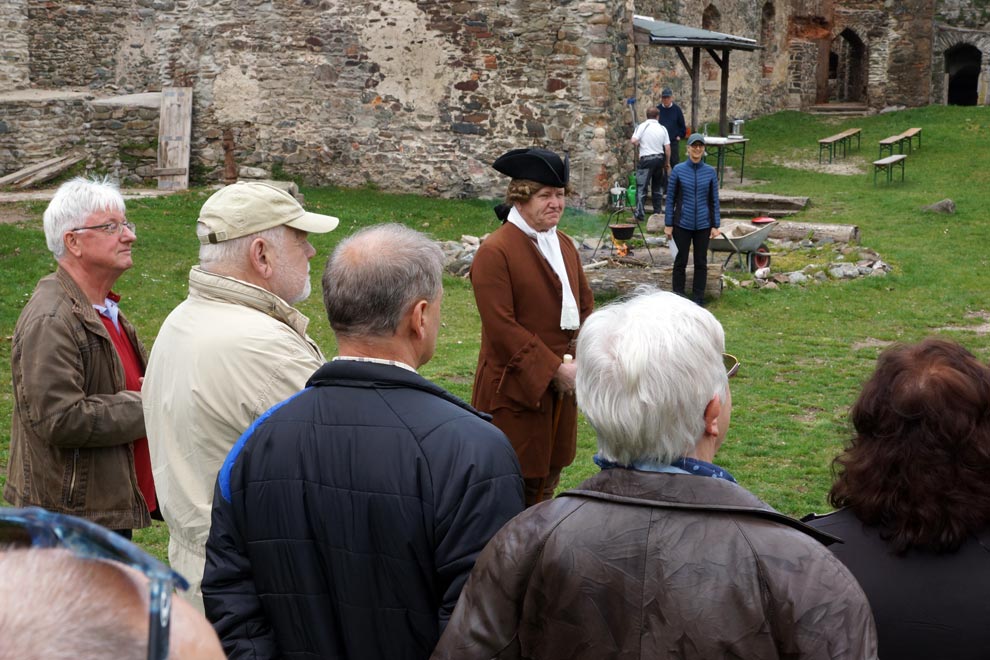 Im ersten Teil besuchten wir die Schlossruine Hartenstein. Mitglieder des Vereins Schlossruine Hartenstein e.V. führten uns durch die Anlage. Dabei erfuhren wir viel über die Geschichte des Schlosses Hartenstein und wir wurden über die Tätigkeit des Vereins Schlossruine Hartenstein e. V. informiert. Besonders erstaunt waren wir darüber, welcher große Aufwand erforderlich war, die Ruine zu beräumen und zugänglich zu machen.
